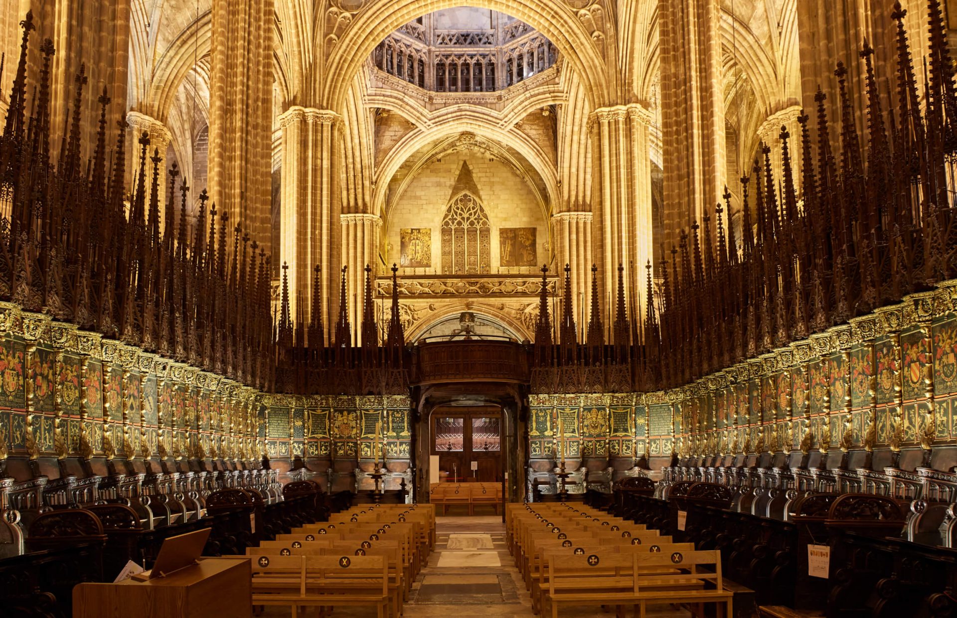 La Catedral de Girona presenta al visitante una nave llena de obras de arte: una gran colección de retablos, un magnífico presbiterio con una cátedra...